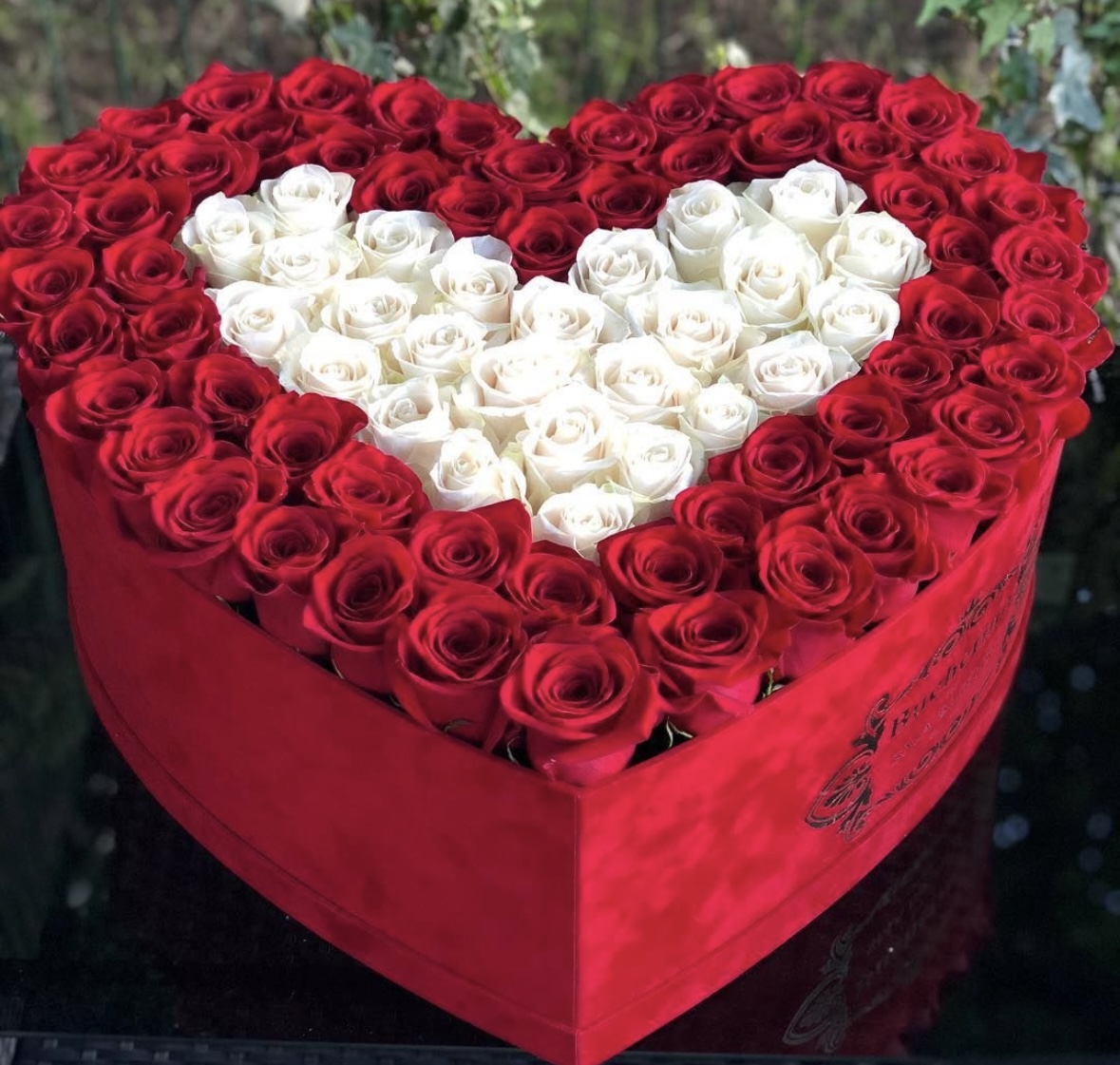 Flower box ve tvaru srdce - 85 růží, velikost 40 cm