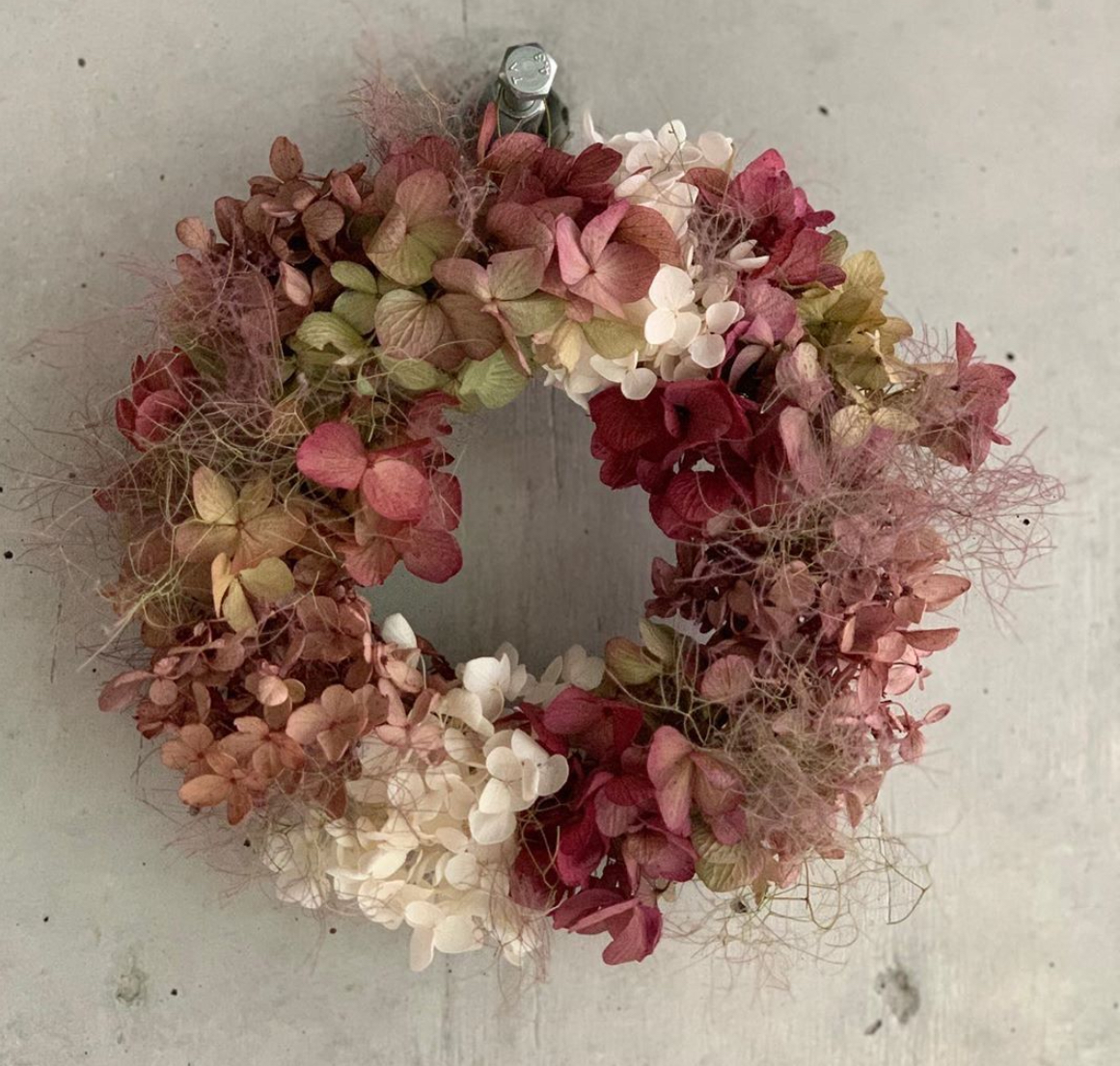 Tento ručně vytvořený věnec z usušených hortenzií v tónech starorůžové, šalvějově zelené a vanilkové přináší do interiéru jemnost a lehkost přírody. Symbolizuje pomíjivou krásu léta, která se proměňuje v klidný, teplý podzim.